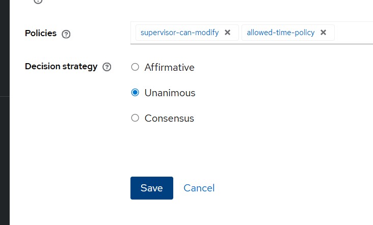 Decision Strategy: Unanimous → both policies must evaluate to TRUE.