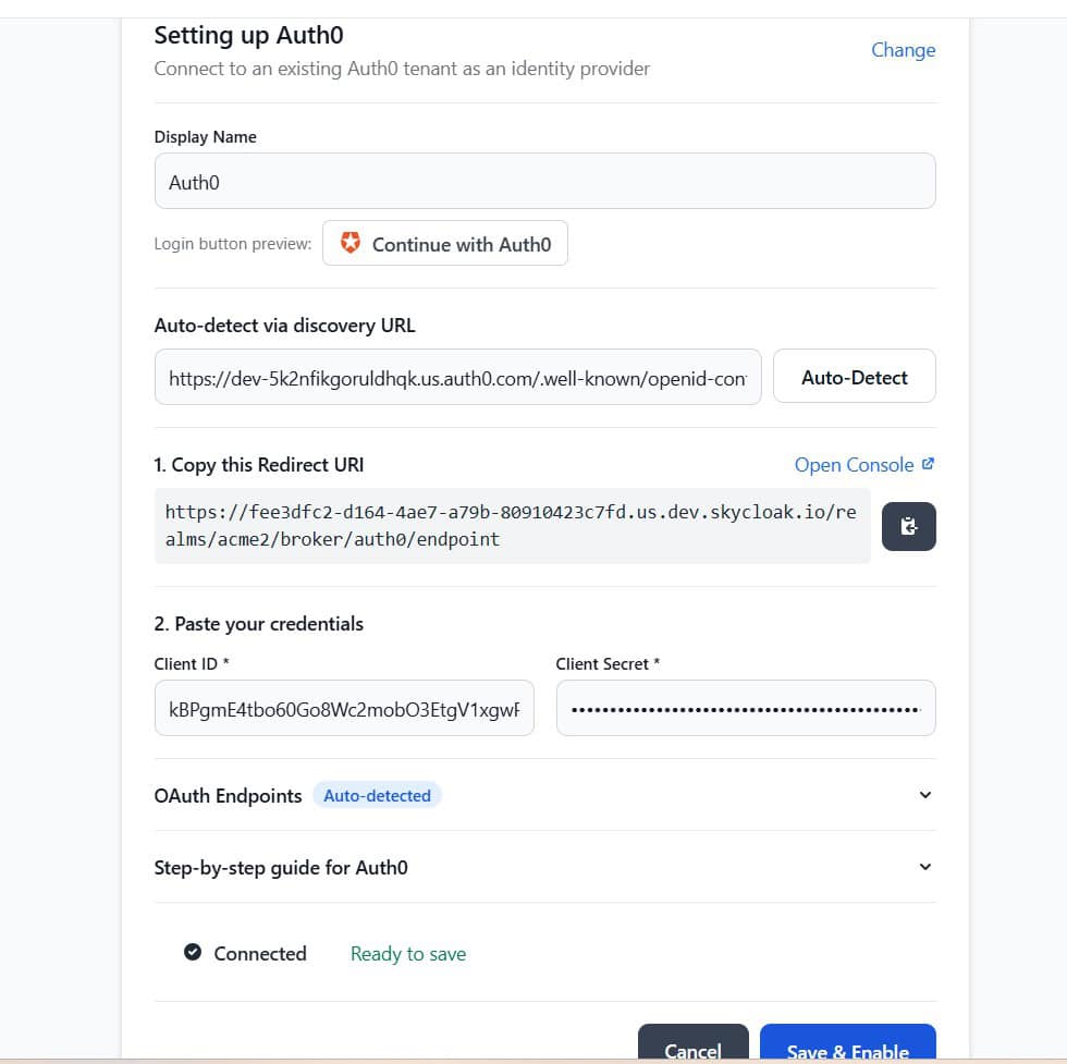 At this point, Skycloak creates a fully configured Identity Provider inside Keycloak.