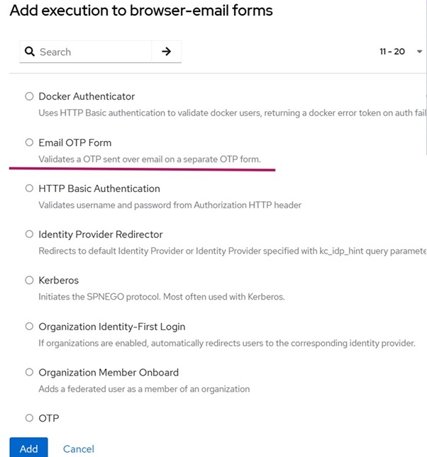 Screenshot of the dialog used to add the Email OTP form
